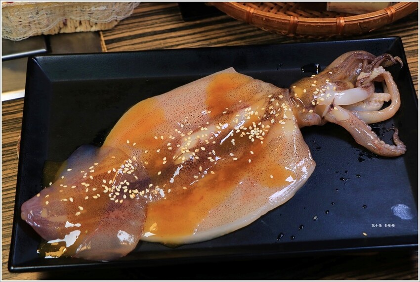 大魷魚烤到二側微捲就可以開動,記得別烤的太久否則會烤到縮水肉質也會變的很乾柴