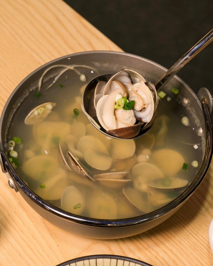 ▼蛤蠣有酒燒和薑絲清湯的煮法,蛤蠣每顆都飽滿多汁又大顆,調味剛剛好,充滿甘甜的鮮美海味。
