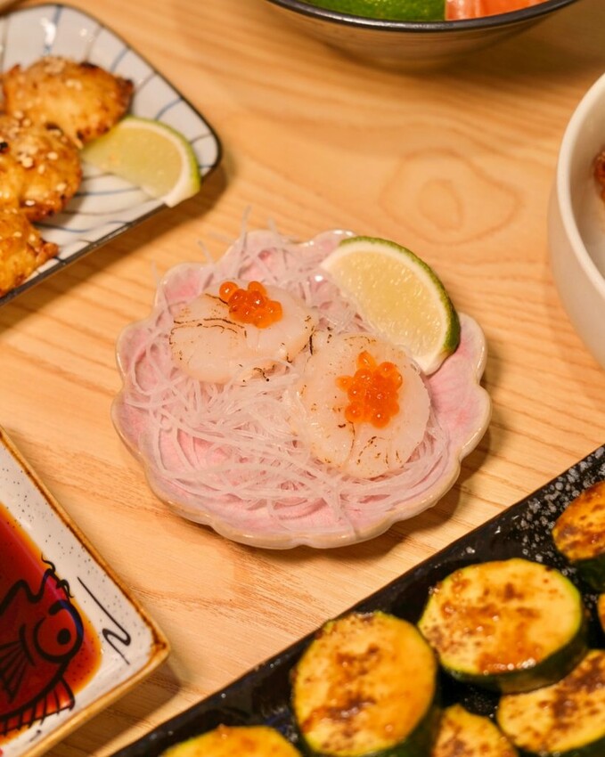 ▼整顆的生食級干貝對切再炙燒,口感細緻又柔軟,在嘴裡散發出獨特的甜香,海鮮控絕對不要錯過~