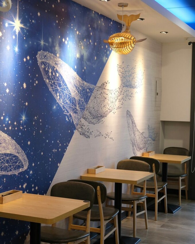 ▼【鮮原手作料理坊】的用餐環境明亮乾淨,以大量木頭材質作為基調,搭配整面的海洋藍色調彩繪牆,帶來清新又舒爽的海岸風情~