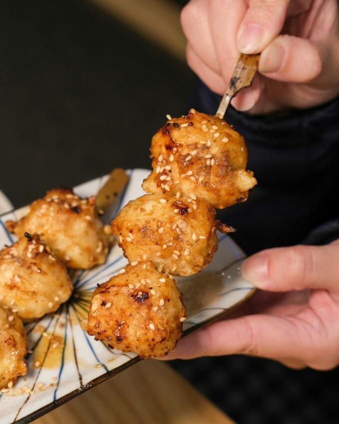 ▼鹹中帶甜的醬燒雞腿串,肉質軟嫩不乾柴,帶有淡淡的燒烤香氣,單吃或配白飯都相當合適。