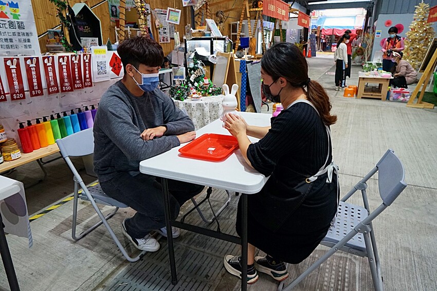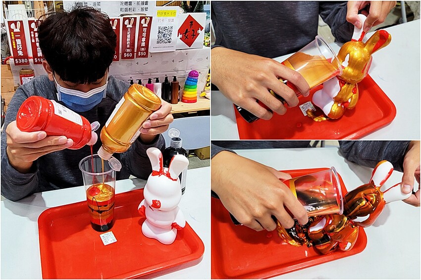 小凉和S今天要來體驗的是”流體畫+萌兔存錢筒”,攤位是”好好.玩創意工作室”