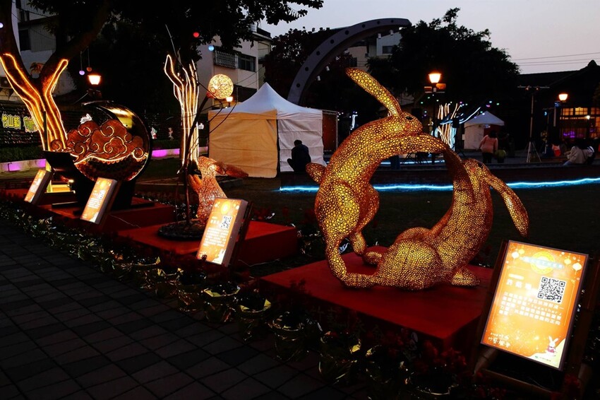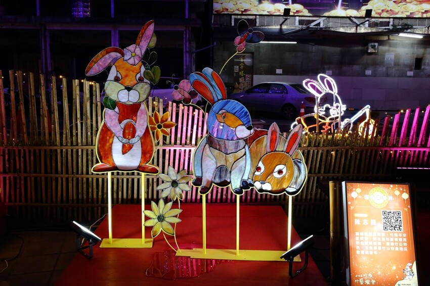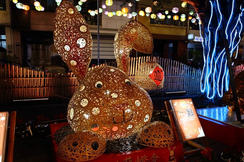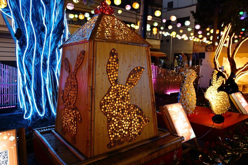 入口意象”福兔之箍”,今年得竹山燈會真的超Q又超療癒,每一條街都能看到兔兔的身影~~