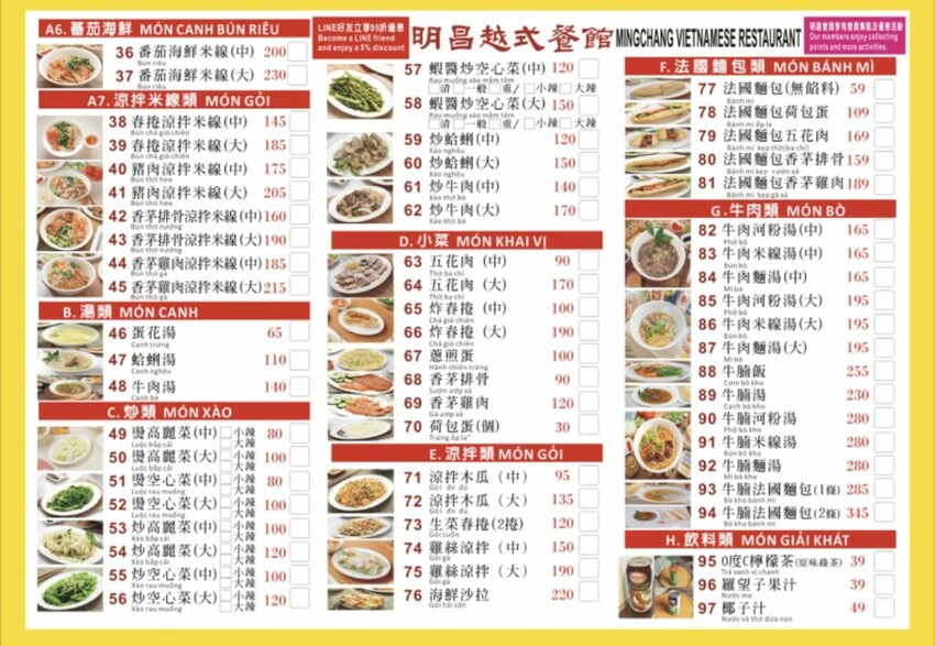 出示特約廠商證件消費享95折優惠,若成為明昌會員可集點及優惠活動。