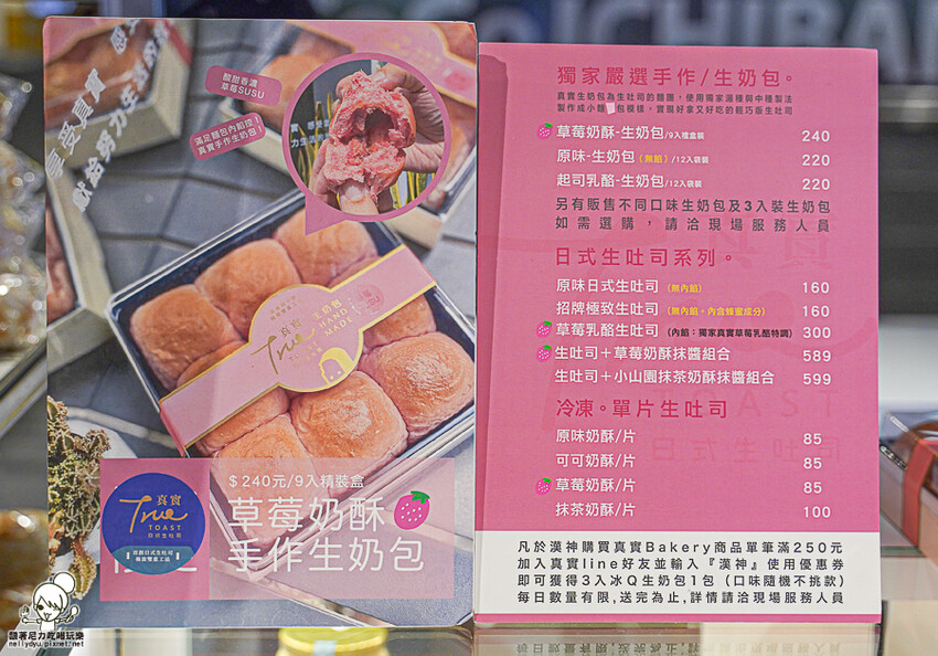 招牌 生吐司、生奶包,多口味可挑選,冬季限定的草莓口味目前最搶手~