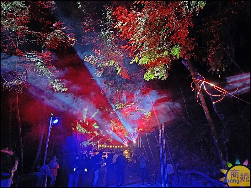 走到這邊往右看,打上燈光的森林非常夢幻,彷彿在日本看夜櫻,真漂亮。