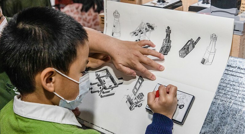 別說小孩就連大人都很認真的在創作、了解自己的基隆港文化印象。