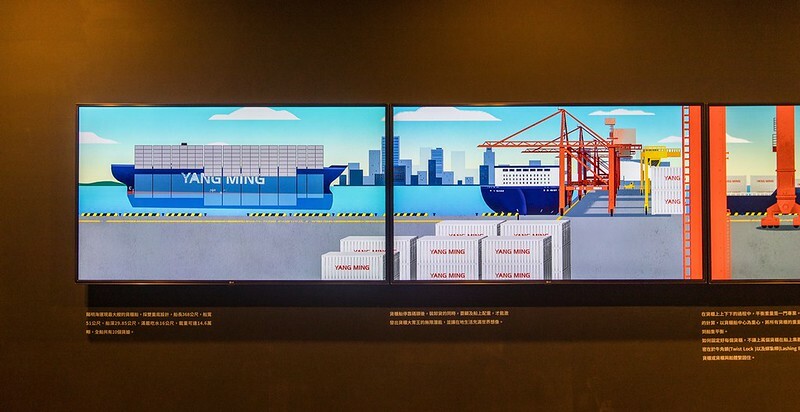 基本上展覽館的設計以船艙和貨櫃為理念,依著導覽的參觀入線,彷彿走進船艙、貨櫃裡,一整個新鮮有鮮。