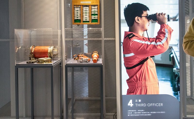 3樓透過照片、文字介紹船上從船長、大副、二副等職位的工作內容,大哥還說了他們的薪水和待遇,其實遠比我們想像來的高,只是相對來說船上的生活也是很辛苦就是了。