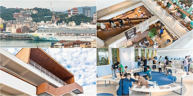 接下來是基隆港附近可以欣賞海港風景的三個景點,首先是虎仔山上廢棄小學改建的太平青鳥書局,這裡可以完整的看到整個基隆港的全貌。詳情參考【基隆新景點】太平青鳥山海書店.山城廢棄學校活化.基隆海景第一排.最美的書店.咖啡廳.圖書館