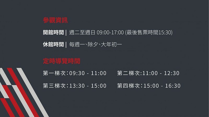 開館時間: 週二至週日09:00-17:00(門票最後販售時間15:00)