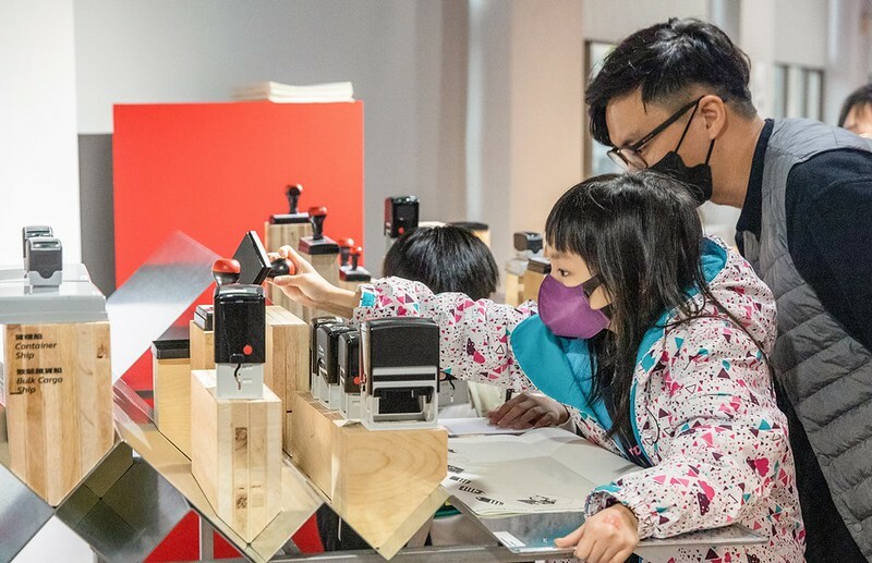 指導老師先花了一點點時間說明了這個展覽活動的概念和意義後,便發給每個人不同材質、大小、顏色的紙張,並回到三樓放滿各種代表基隆海港、輪船文化的面貌、視覺、人文、故事,再透過不同組合的印章,進一步了解並串成屬於自己的基隆港文化。