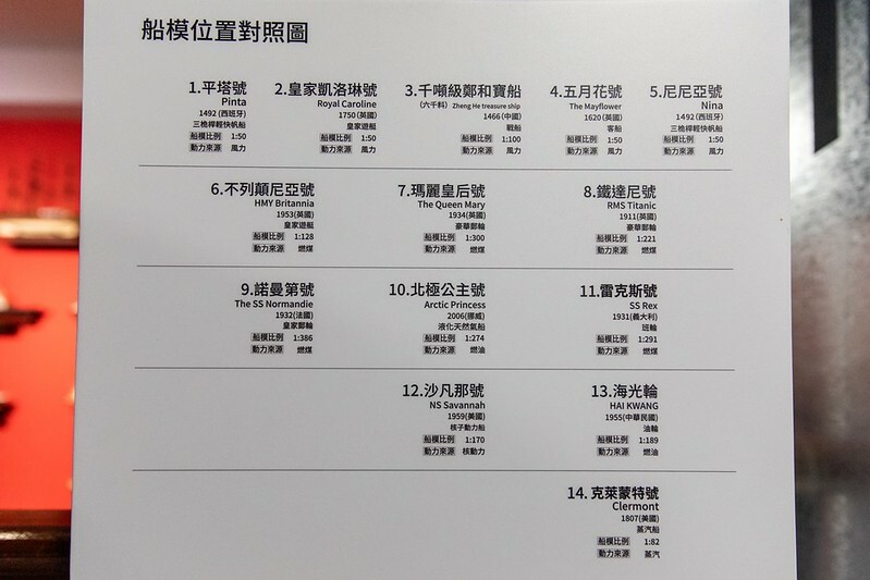 2、3樓的樓梯間牆上有14艘世界知名的貨、客郵輪,旁邊還對照每艘船的年代、噸位、長度和動力來源。3是鄭和寶般,8是著名的鐵達尼號,15號則是台灣1955年的海光輪。