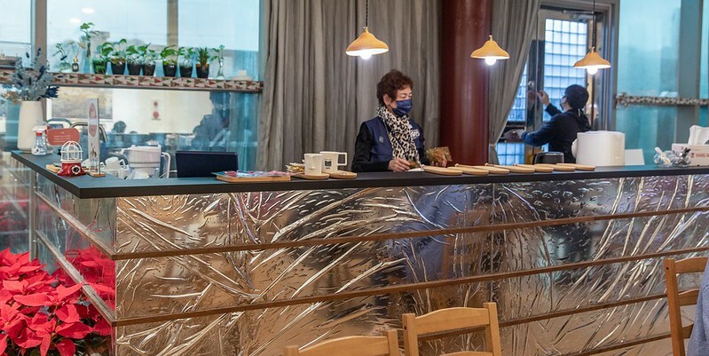 靠窗有可以欣賞基隆港風景的座位,可惜當天氣候不佳,或者應該說這才是基隆的正常演出。