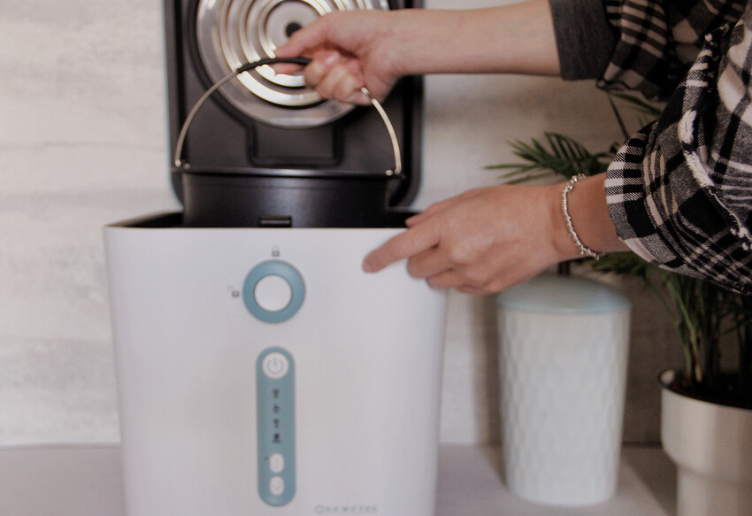 ⚠️使用時要特別注意的事,冷凝水會從底部流出,所以會建議底層可以擺個盤子或不要的布,才不會弄髒了家具!雖然流出的量不多,但積少成多的黃漬還是先防範比較好。