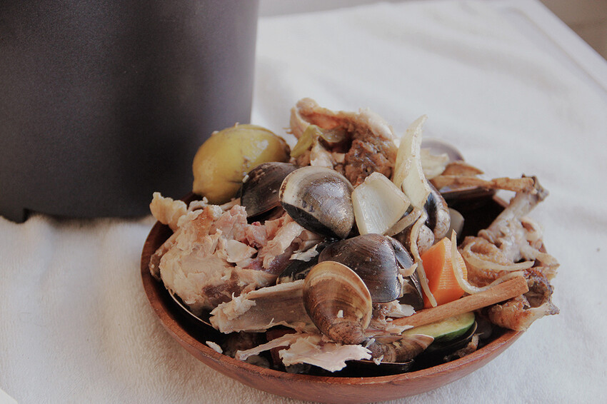 這盤有一隻雞的雞骨、蛤蜊、蔬果皮等等廚餘,one-meter 智能乾燥廚餘機大概只有豬大骨無法消化,婗媽最近吃了豬肋排下去消化是沒問題的,反正我們家最粗礦的廚餘大概也是它了吧!