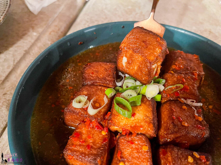 老皮嫩肉價格價格260元,將雞蛋豆腐煎到外皮金黃色,再淋上醬汁,微辣的口感很配飯耶!