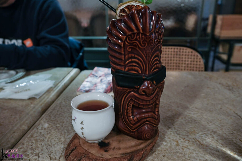 來川酒用餐已經有段時間,最近想到要介紹這家餐廳時發現酒單的內容已經有更改過了,不過還是可以讓大家看看,這裡的調酒真的蠻厲害的,這個杯子也超有趣的,這一杯名稱是觀音小姊姊與黑面蔡的私奔日記,是用鐵觀音、山西汾酒、梅酒、新鮮檸檬汁、山楂泡泡一起去調成,喝起來酸酸甜甜又帶點微微的紹興酒味道,酒體也不會太厚重。溫馨提醒開車不喝酒,喝酒不開車喔!