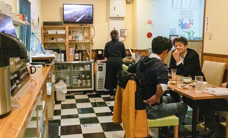 二樓有一個小吧檯,還有兩三張四人桌,檯上放著以山陰、鳥取為主的地酒,也有當地的啤酒、威士忌、調酒等選擇。