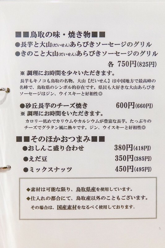 涼伴豆腐比較一般,但鳥取砂丘長芋起司燒則非常好吃,除了起司外還加了大量白醬,和過往吃過的起司馬鈴薯燒相對清爽一些,menu上面寫著和威士忌很配。