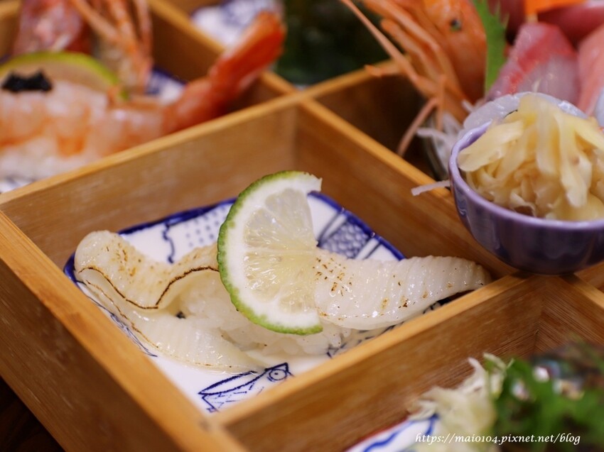 生魚片的部份使用魚肚部位,油花更豐富、口感更加鮮嫩