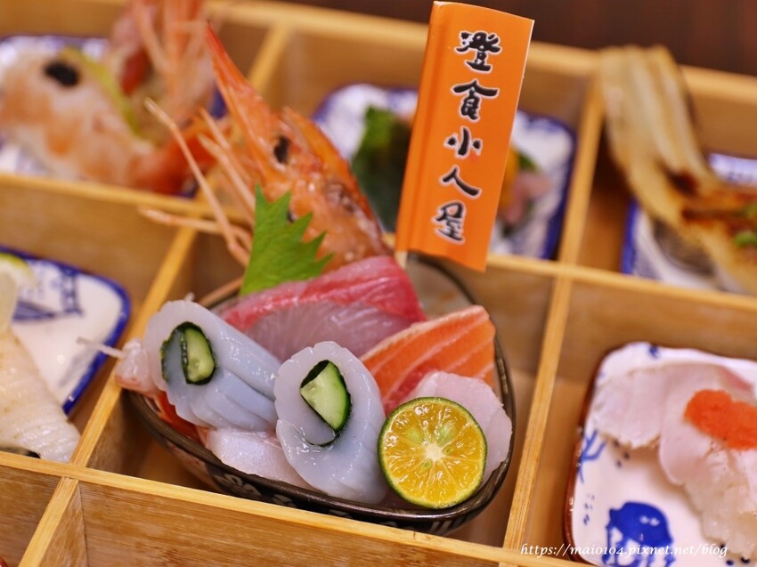 澄食小人屋2的生魚片丼飯是師傅以當天的漁獲來配的,今天吃到的是鮭魚、鮪魚、旗魚、鮸魚及赤蝦