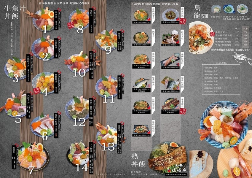 澄食小人屋2店菜單~各式丼飯及烏龍麵