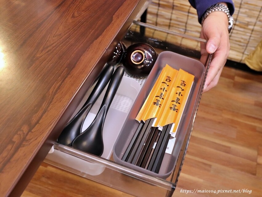 再加上餐具就擺放在桌子下方的抽屜