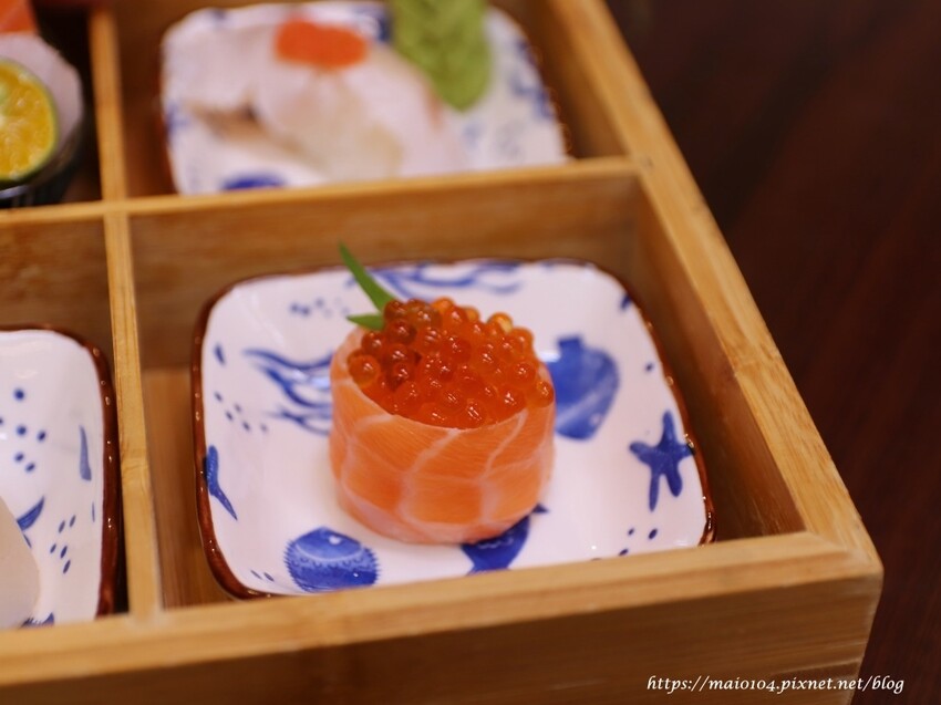 鮭魚肚與鮭魚卵的搭配,吃起來有著層次的口感
