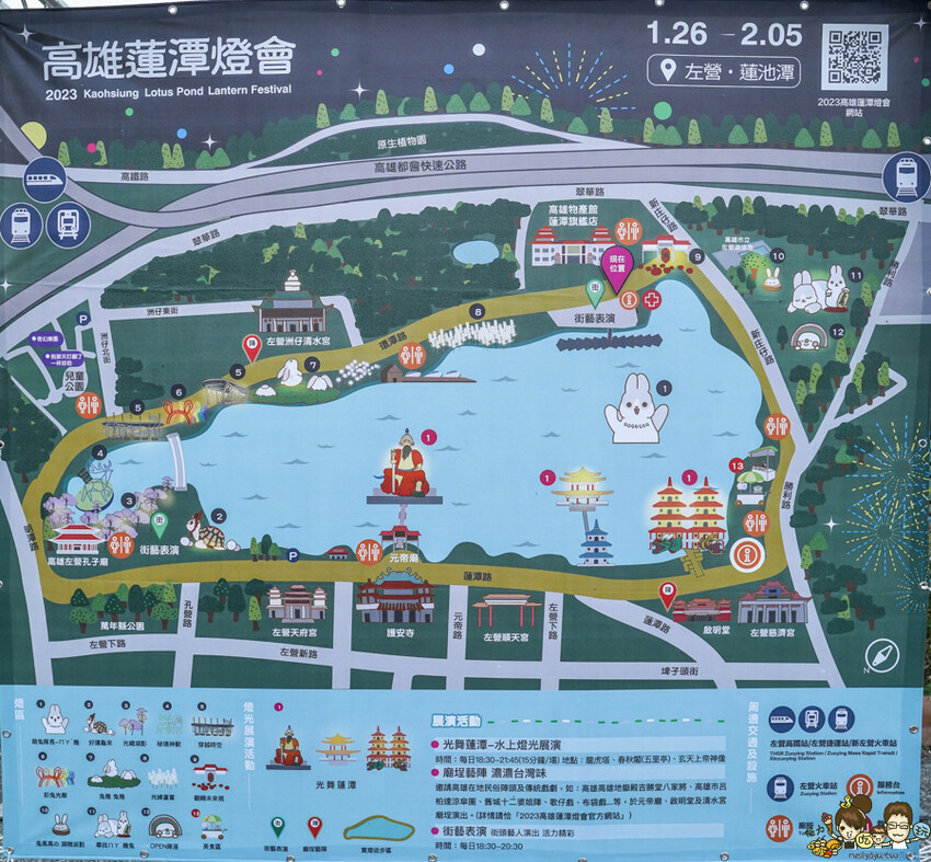 2023年高雄蓮潭燈會就在左營蓮池潭舉辦,充滿傳統祭典、廟宇與文創結合的燈會