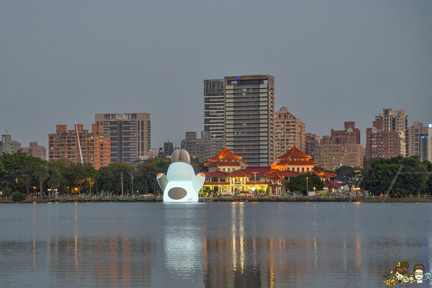 從火車站走到蓮池潭,通過了蓮池潭風景區牌樓很快就看到主燈全台最大 ㄇㄚˊ幾兔,高雄IP