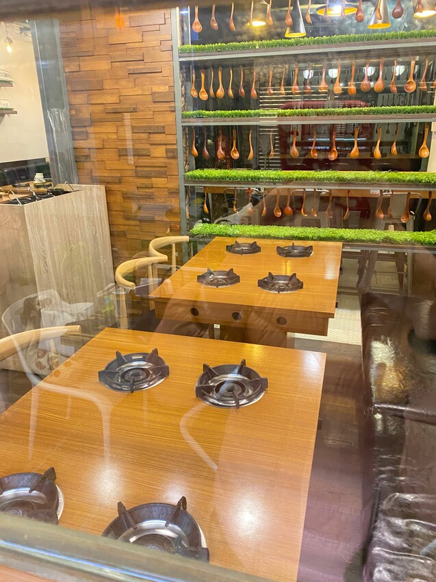 逢甲店的裊裊鍋物的雖然空間本身不大,進店後有一種回到家的溫馨感,從門口往內看,店內座位約莫有五桌的四人座位
