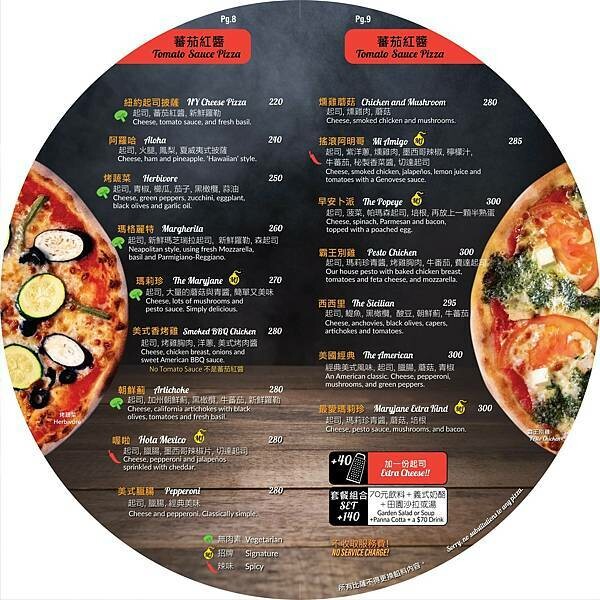 菜單拼起來居然是一個圓形披薩,黑板上還有推薦的飲品或優惠活動,推薦來瑪莉珍記得看看黑板有甚麼推薦的品項喔~