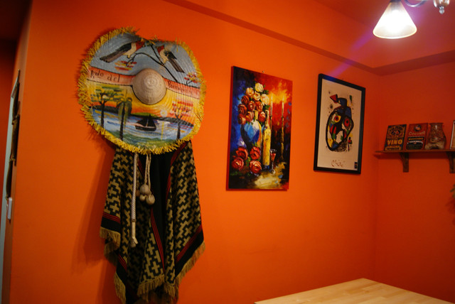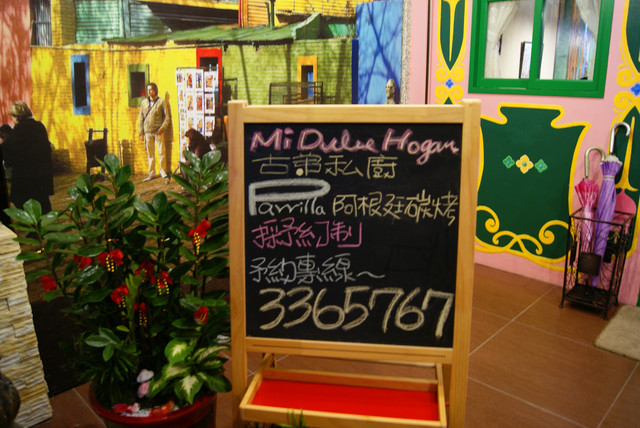橘紅色的鮮豔外牆加上個性彩繪,飄逸著濃濃的異國風情。門口兩側是全幅的布宜諾斯艾利斯街景,在味蕾還未品嚐到美味之前,店家便以熱情的裝潢讓訪客來場視覺旅行。
