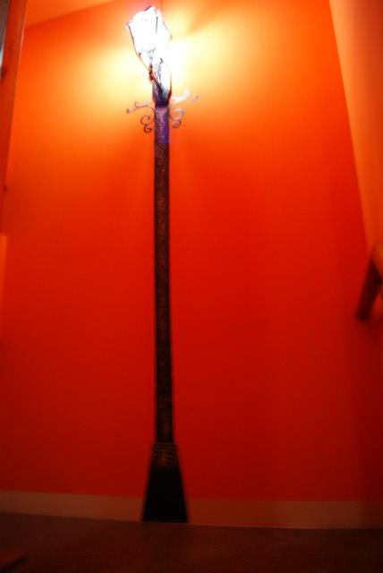 樓梯轉角的壁燈被畫上了路燈一樣的造型,很有巧思。