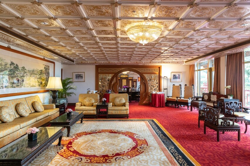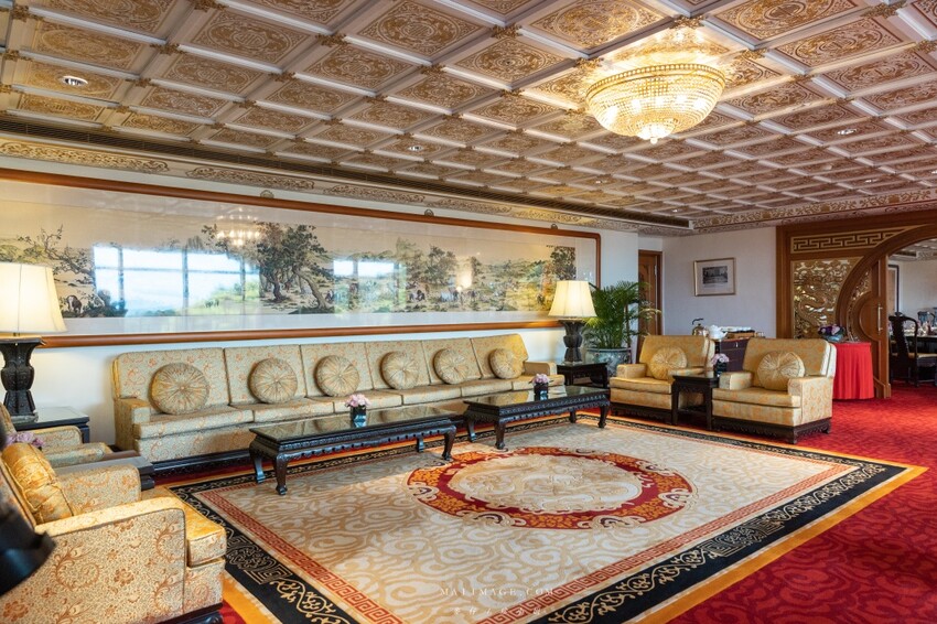 推開大門後映入眼簾的是金碧輝煌的客廳,麒麟廳之前是蔣中正總統所入住的套房,現在重新整理變成國宴宴客廳。在這拍照絕對氣勢滿點。