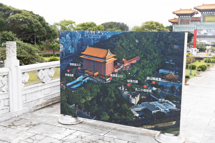 從麒麟廳望出去的美景,感謝老天爺這天給我個沒下雨的天氣,本來看氣象有很高機率會下雨,實在開心。這次搶先體驗的東密道之旅非常充實,能夠親自走在疏散外賓的通道、欣賞神秘小花園的美景、參觀孔二小姐的故居、品嚐國宴的宴客料理,相信很多朋友都會很有興趣,之前西側密道可以帶來17萬人次的參觀人潮,我想這次的東側密道之旅再搭配國宴文化餐那吸引力絕對翻倍。