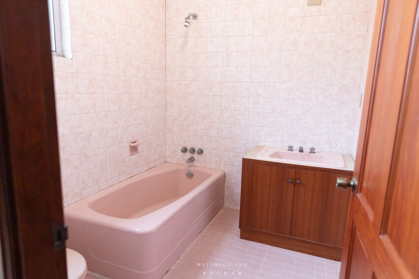 蔣宋美齡女士當年所使用的廁所,相當有少女心,這裡面全部的磁磚都是日本進口,好繽紛的粉紅色。
