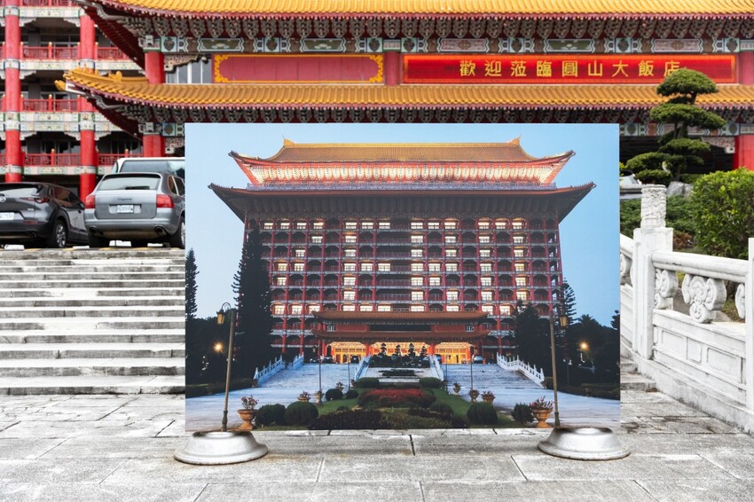 首先先從圓山飯店最正面開始介紹,圓山飯店是由幾個不同時期所建造的,目前眼前最大的這棟主體建築是在1973年才建造而成。這建築就像是皇宮的建築,是以坐北朝南的方向建造,兩旁邊就是東側跟西側。東西側的兩端都有一個所謂的密道,圓山飯店接待過111個國家的外賓,當時兩岸關係緊張這密道就是緊急疏散使用。