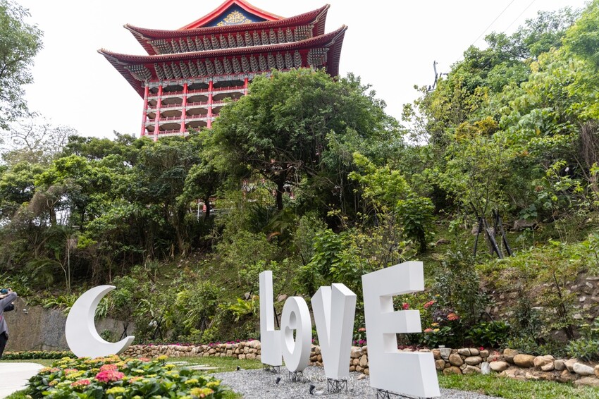 除了造景藝術可以拍照外,旁邊的花園也是取景的好地方。可以同時看到造景藝術跟圓山結合在一起,這真的是很適合新人來這裡取景派照耶,大推。