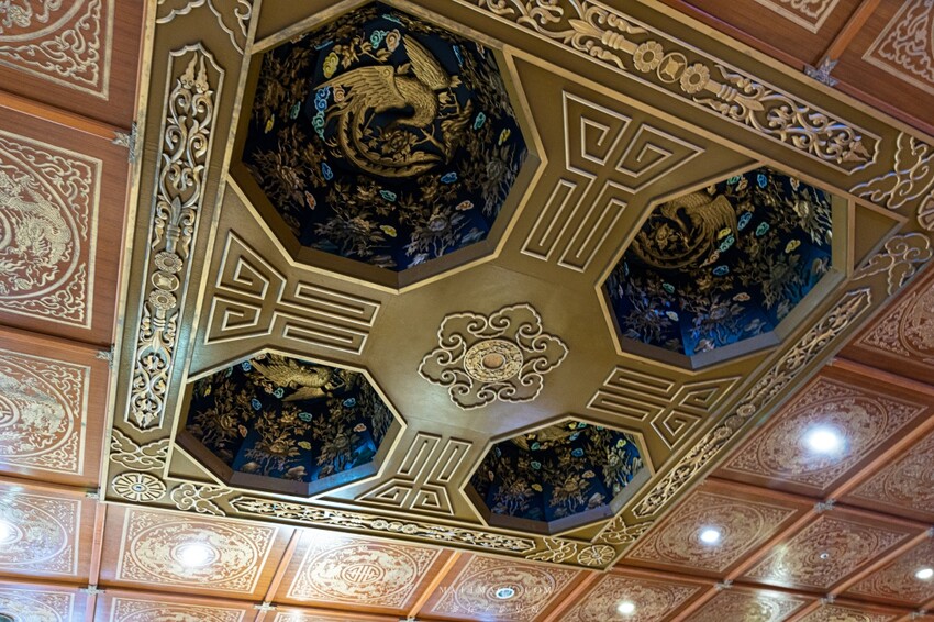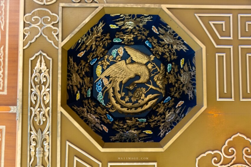 麒麟廳大廳上方的雕刻相當精美,上面雕的是鳳凰。