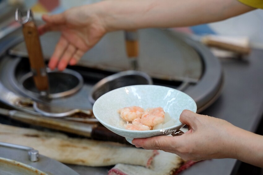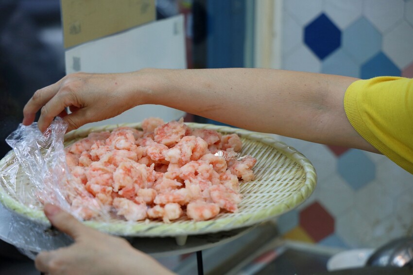 嚴選大隻白蝦,每日新鮮進貨,並手工現剝處理。雖然一碗只有5隻蝦,但蝦子個個飽滿又肥美。蝦肉新鮮甜脆Q彈,吃來真是爽快!