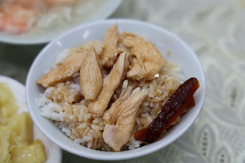 雞肉飯採用的也不是一般常見的雞肉絲,而是比肉片再厚一點的肉塊。看著整個備餐的過程,只覺得肚子好餓喔!
