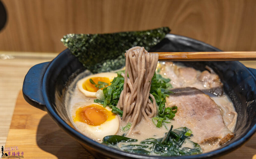 博多豚骨拉麵(迷你量),我搭配的是叉燒、換購有機黃金蛋,因為要拍照怕海苔軟掉特別請店家幫我另外放,拉麵上面放了好多蔥看起來就很美味啊!