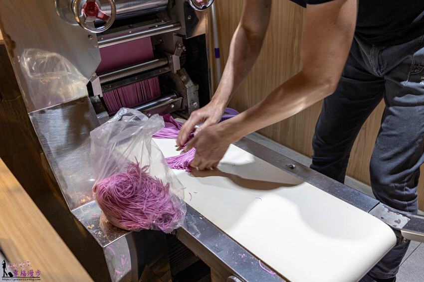 老闆是用天然食材加入麵糰中,是採用當令季節的食材製作,每日手工現做,麵團反覆的一拉一醒,才能讓麵條呈現Q彈的口感。