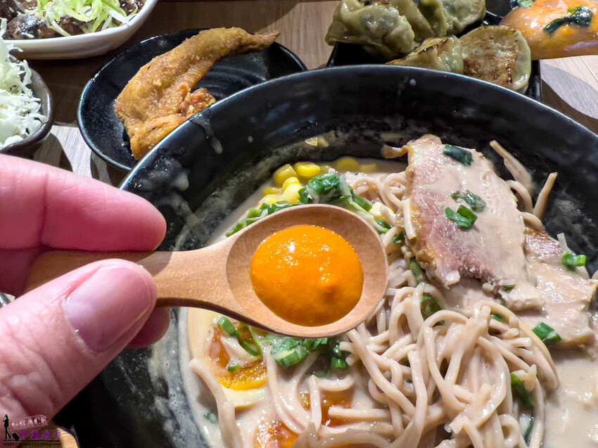 信川屋博多豚骨拉麵店|台中市西區–四種濃郁湯頭搭配每日限定手工麵條的好滋味,新鮮食材製做出健康七彩手工麵條清爽無負擔,九層塔日式煎餃酥脆又特別