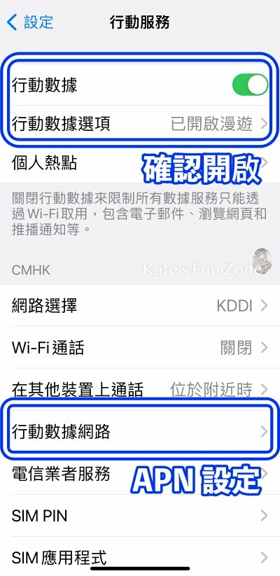 - 設定 > 行動服務 > 行動數據選項 > 行動數據網路