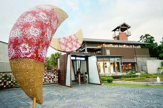 傳藝中心門口擺了兩個好大的”擲筊” ,而且還用客家花布來包覆,本身也是利用竹子編織而成的作品