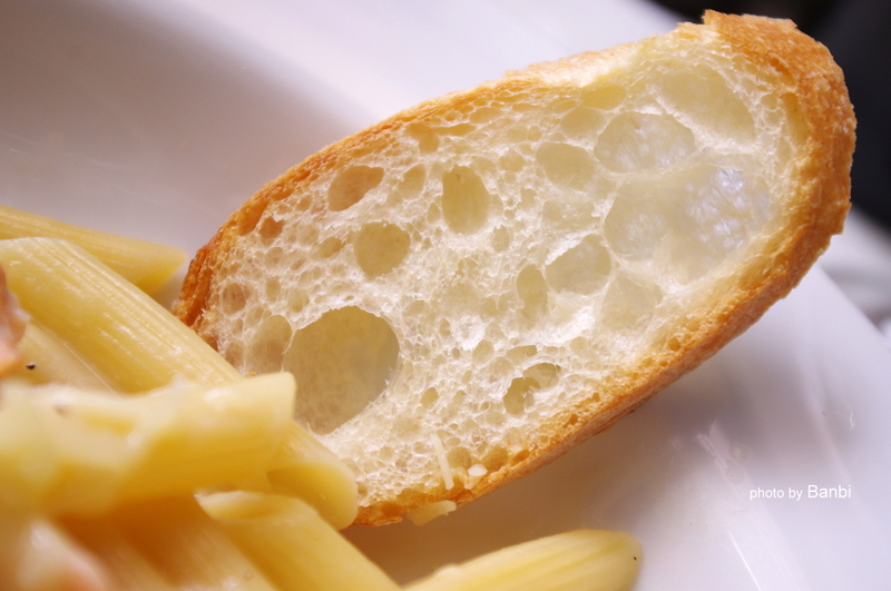 麵包為那種脆脆硬硬的麵包,沾著義大利麵的醬一起吃真是不錯。