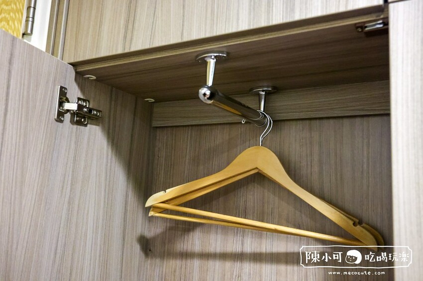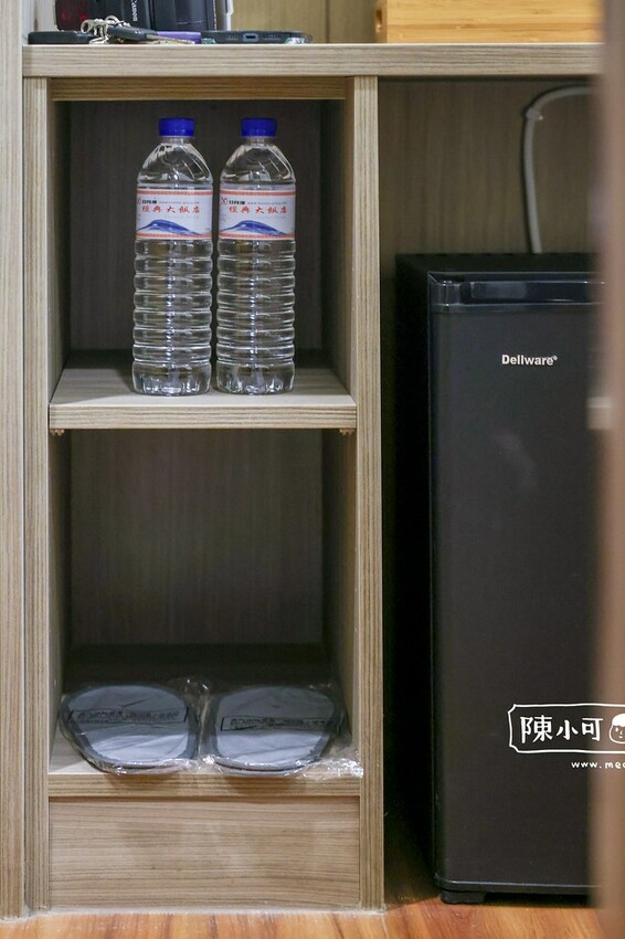 房間的入口有衣櫃和冰箱,也有提供礦泉水、室內拖鞋、茶包跟泡茶用的器具。